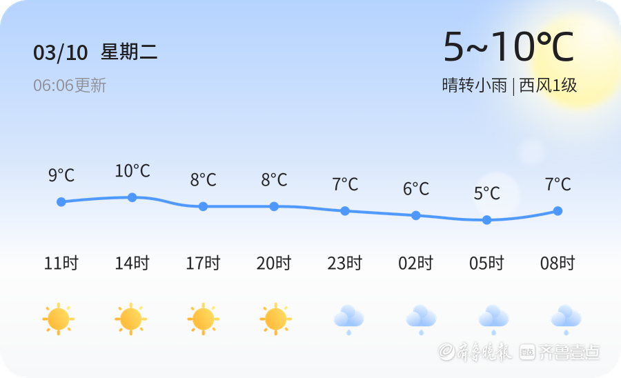 今日是3月10日,星期二,农历正月廿二。日照市今日天气为晴转小雨,气温介于5℃至10℃之间。目前气温为2.2℃,风向为西风1级,空气湿度为63%,PM2.5指数为53,空气质量状况为良好。市民今日出行时建议携带雨具,注意防风保暖,以应对小雨天气带来的影响。