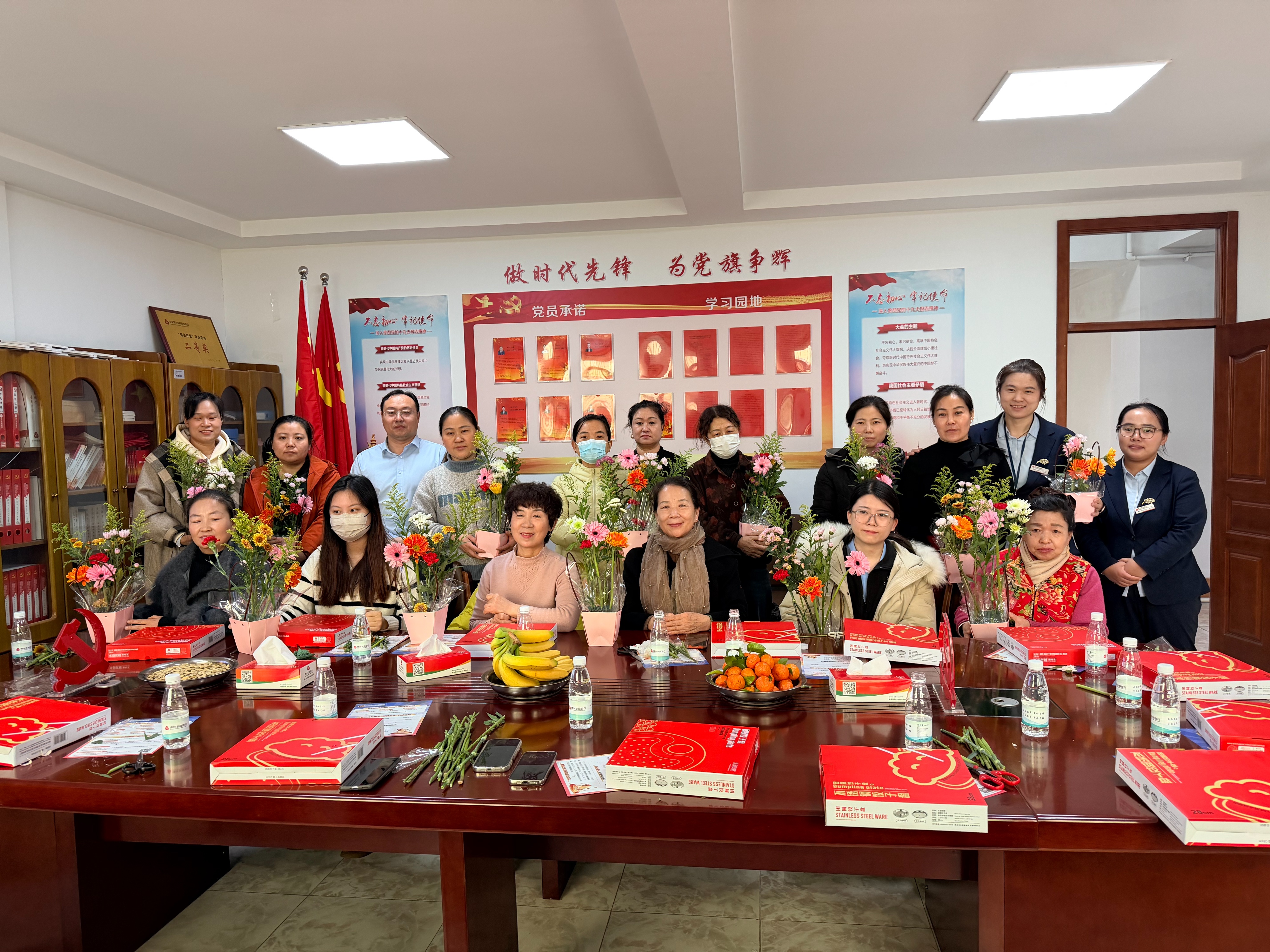 本次活动聚焦博兴农商银行女性客群精神需求与金融需求,打造集花艺体验、金融服务于一体的沉浸式沙龙。活动现场布置温馨雅致,甄选玫瑰、康乃馨、洋桔梗、尤加利叶等优质花材,让大家在剪枝、插瓶、造型的过程中,放慢节奏、舒缓身心,感受手作花艺的治愈与浪漫,用一束鲜花装点生活,致敬每一位独立、自信、闪耀的巾帼女性。
