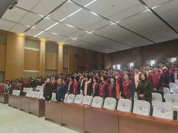 大会在庄严肃穆的升国旗、奏唱国歌仪式中拉开帷幕,全体师生昂首肃立,爱国情怀与拼搏之志在心中激荡,为百日冲刺注入强劲精神动力。
