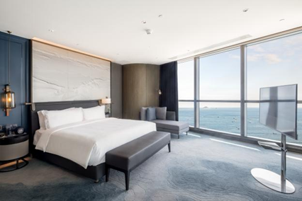 对于青岛而言,海天大酒店不仅是一座地标,更是这座城市眺望世界的窗口。作为青岛首家涉外五星级酒店,海天大酒店接待了众多海内外贵宾,含近20位国家元首、政府首脑以及众多国家的政坛要员和知名人士。2021年的焕新回归,使其以国际化“城市会客厅”的姿态,继续履行连接世界的使命。与此同时,青岛瑞吉酒店以国际顶奢标准,提升了青岛旅居市场的国际能见度;青岛国信金融中心酒店则聚焦都市微度假与品质商旅,精准服务本地品质生活需求。