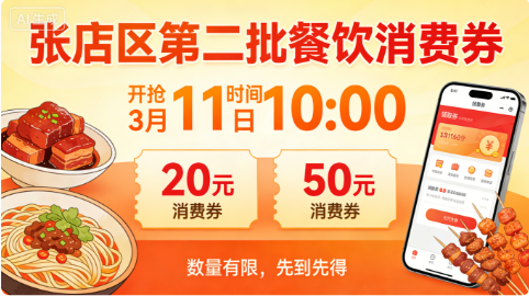 一张消费券,点亮人间烟火,提振餐饮活力。新一轮美食福利即将上线,记得准时开抢,品味张店好味道。