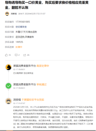 世纪缘珠宝被指诱导购买“一口价”黄金,消费者维权遇阻