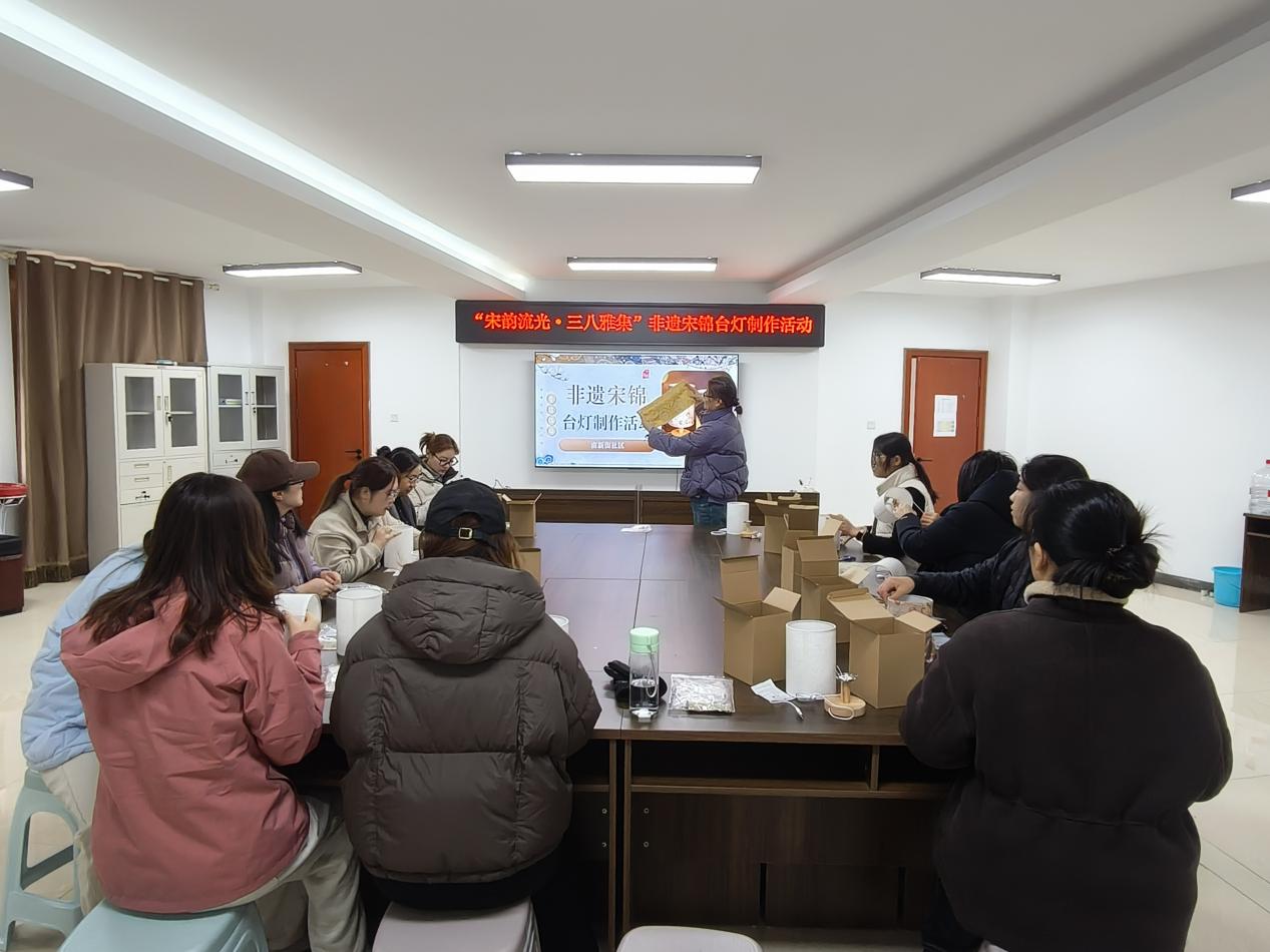 南苑街道南新街社区开展“宋韵流光·三八雅集”宋锦台灯制作活动