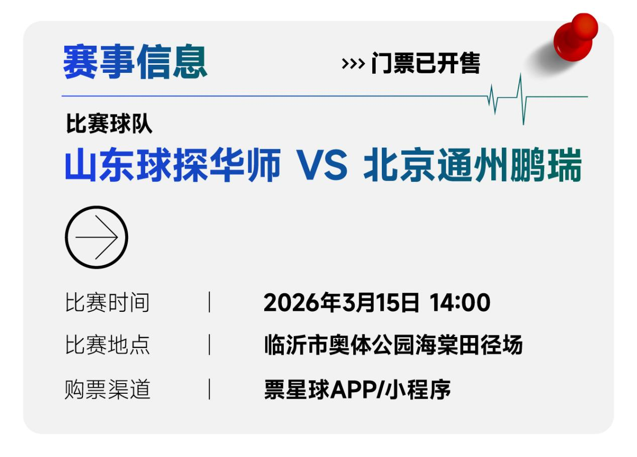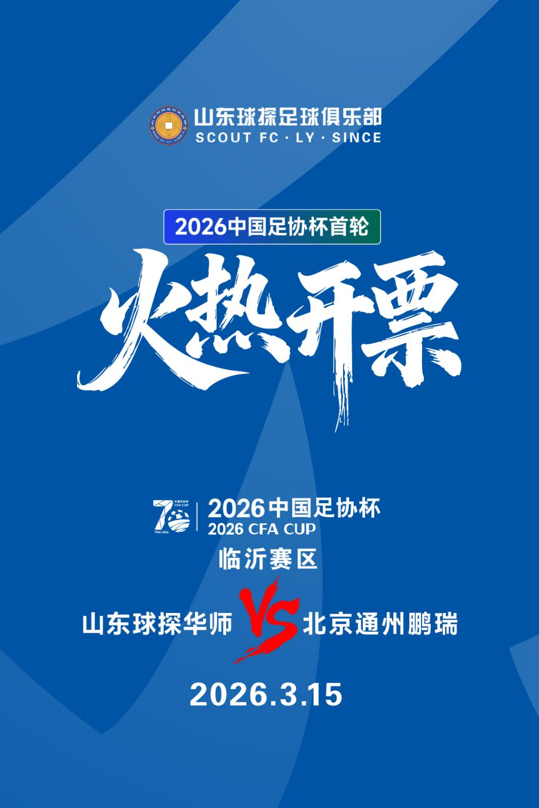 2026中国足协杯战幕即将拉开,3月15日14:00,山东球探华师队将在临沂奥体迎战北京通州鹏瑞队。