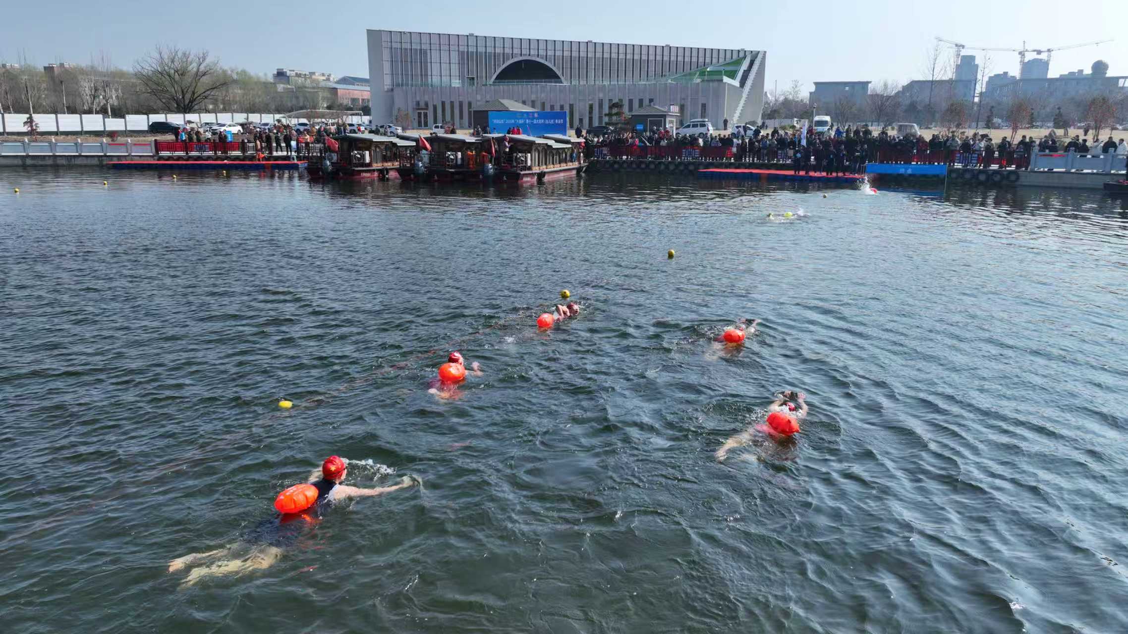 158名健儿劈波斩浪! 第十一届大运河台儿庄冬泳节举办