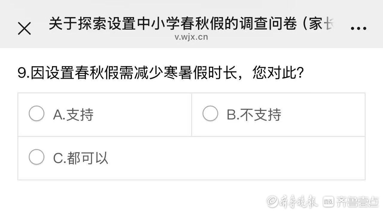最值得关注的是,问卷直面了政策实施的最大“代价”——在第九题中明确向家长告知:“因设置春秋假需减少寒暑假时长,您对此是否支持?”这一问题的设置,清晰地表明未来的假期调整将是一个“总量不变、结构优化”的方案。