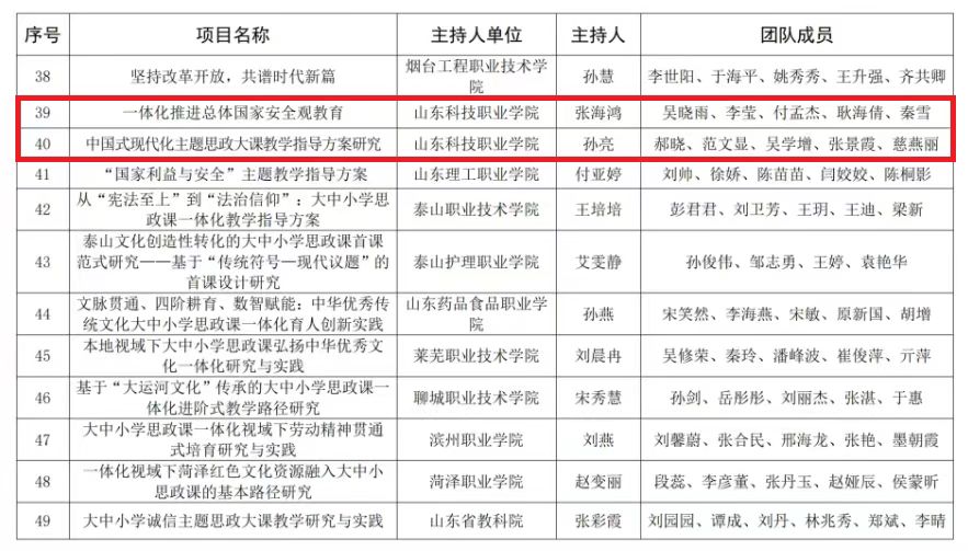 近日,2025年山东省思想政治教育教学改革项目拟立项结果正式公布,山东科技职业学院申报的2项课题成功获批立项。