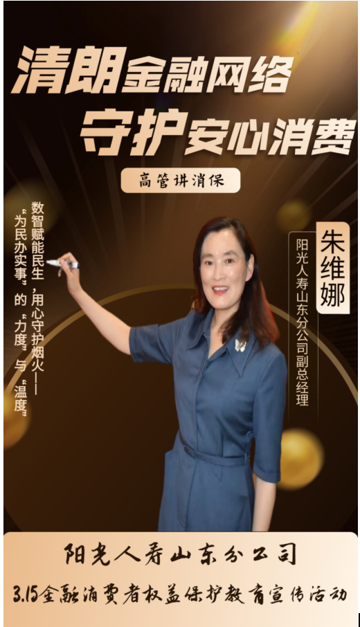 编者按:值此“3·15”金融消费者权益保护教育宣传活动期间,阳光人寿山东分公司特推出高管讲消保系列,旨在以管理者的视角,传递行业正能量,弘扬诚信经营之风。