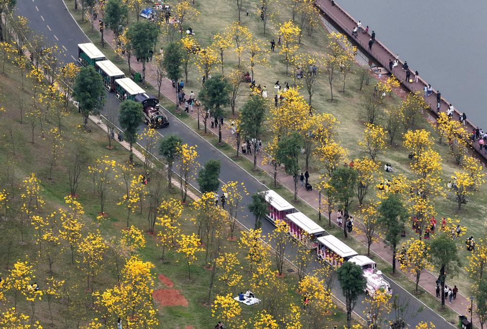봄을 맞아 꽃들이 만개하면서 난닝시에선 야외에서 봄나들이를 즐기는 시민들이 늘고 있다. 2026.3.9