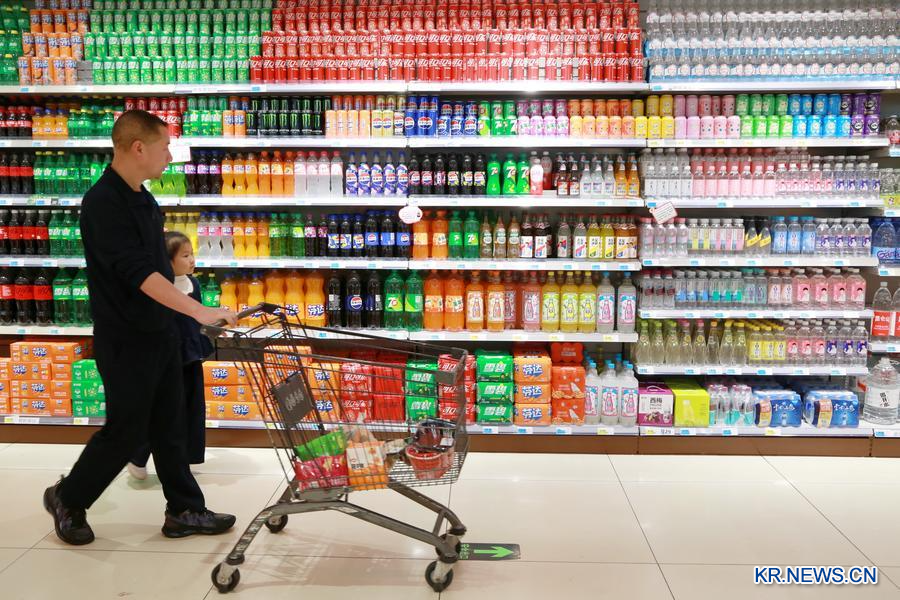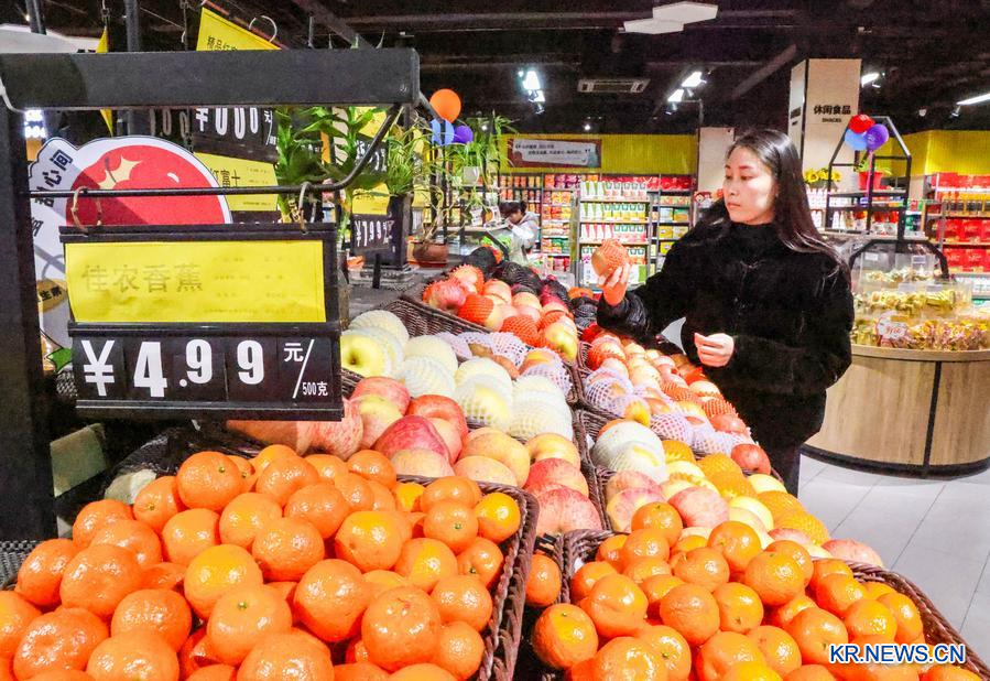 장쑤(江蘇)성 양저우(揚州)시 장두(江都)구의 한 마트를 찾은 소비자가 9일 상품을 고르고 있다. (사진/신화통신)