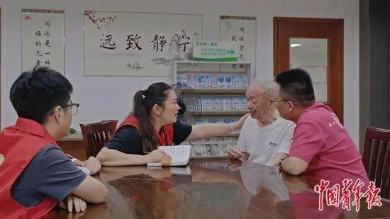 “我为烈士来寻亲”项目发起人孙嘉怿和志愿者在浙江省宁波市海曙区横街镇大雷村看望汪善春烈士之弟汪信春。中青报·中青网记者 白杨/摄
