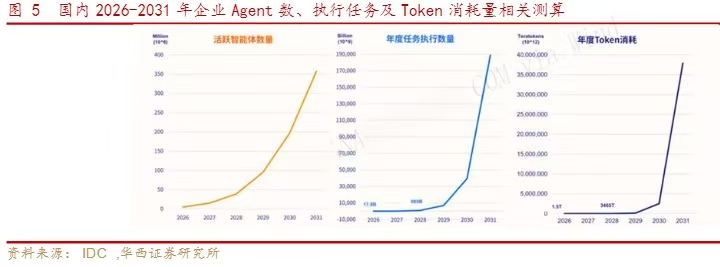 同时,Token消耗从“人机对话”升级为“机器自循环”,一次任务可能消耗数十万、数百万Token,带动海量的算力需求。“Agent有望成为AI应用最先落地的场景之一;Token消耗数加速攀升,有望拉动算力需求,维持算力链条通胀趋势;助力国产大模型需求提升,并加速其出海进程。”华西证券指出。