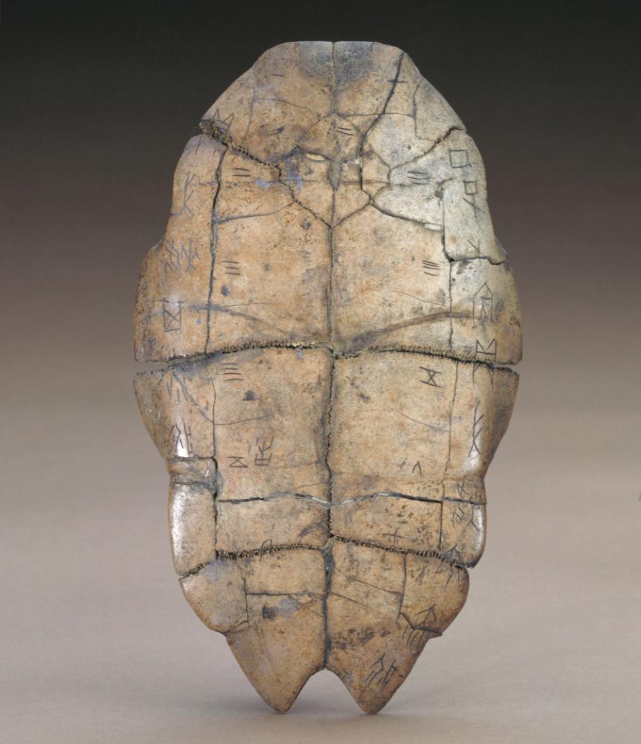 许多学者倾向认为,中国的文字诞生于公元前1600年左右,产生动因是占卜。甲骨卜辞通常分为四个部分:叙辞、命辞、占辞和验辞。商王将问题刻在甲骨上,用火灼烧后根据裂纹解读神意,再把结果刻上去。商人几乎无事不卜,因此需要大量语言来表达各种意图。频繁的祭祀活动、众多的先祖名号,以及无数的预测结果,都刺激了词和句子的产生,也推动了造字法和语法的逐步形成。文字的存在,使商王的统治得以巩固和强化。