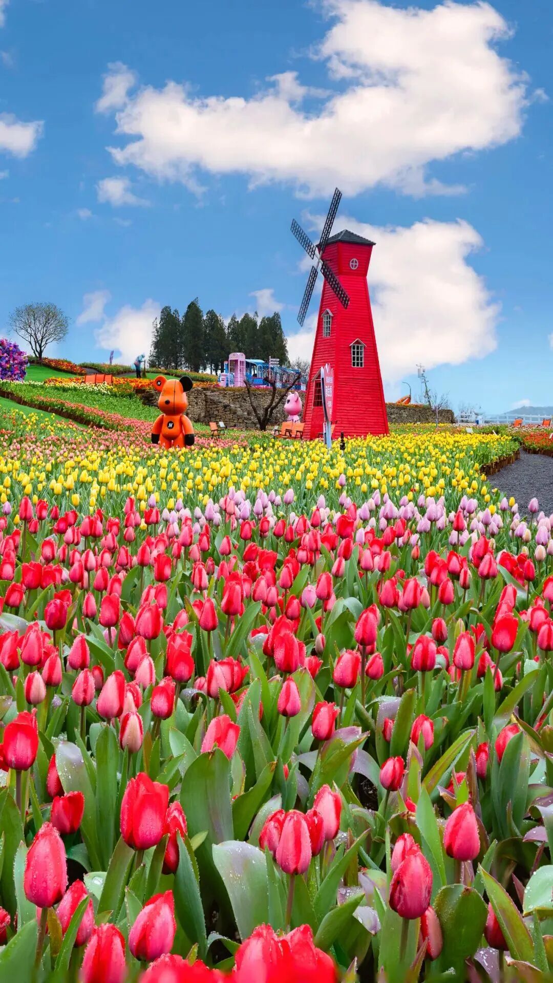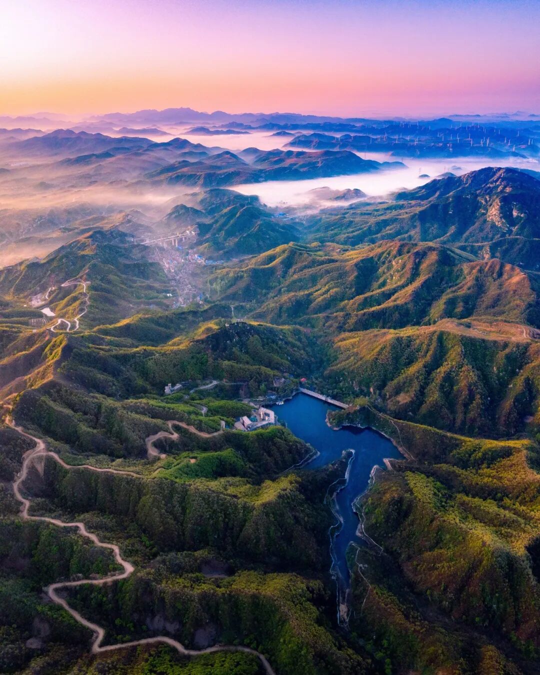 潭溪山秀美又宁静,春日里冰雪消融,溪水潺潺流淌,岸边的迎春、连翘缀满枝头,金黄一片,别提多好看了。这里的高空玻璃桥更是观春C位,站在桥上,能看见满山繁花如海浪般铺开,风一吹,连空气里都是花香。