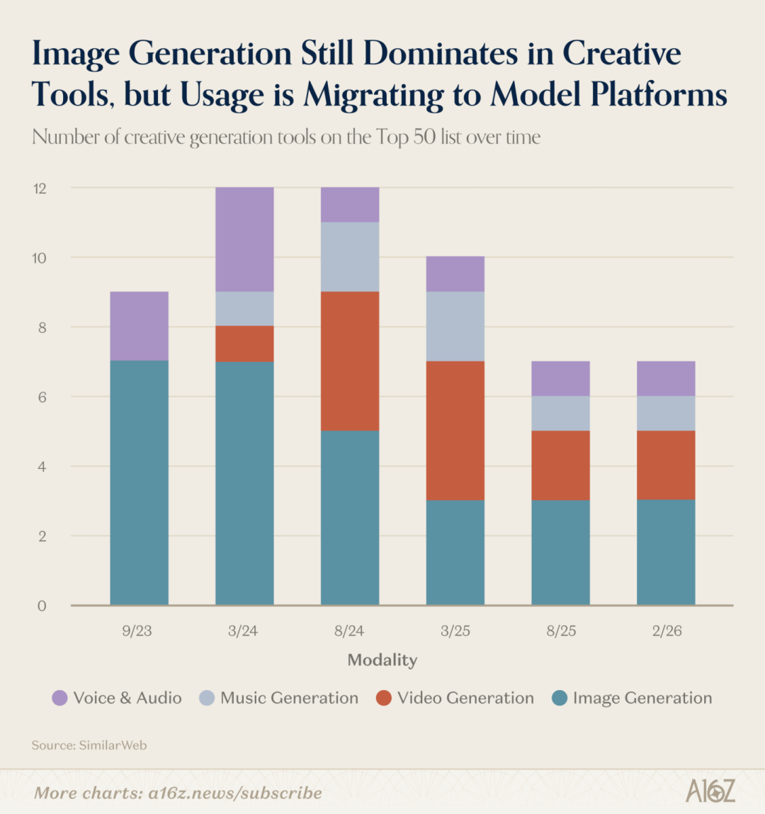 参考链接: [1]http://a16z.com/100-gen-ai-apps-6/ [2]https://x.com/omooretweets/status/2031037488463253839
