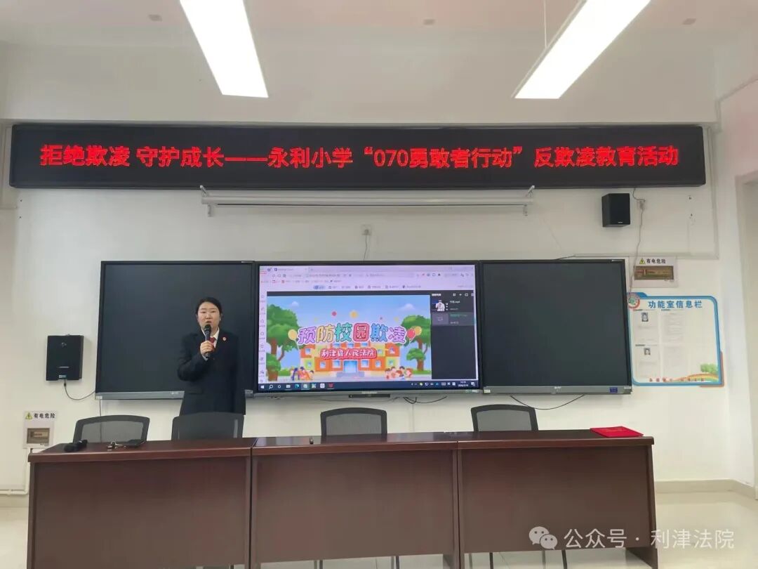 为筑牢校园安全防线,提升青少年法治素养与自我保护能力,切实预防和遏制校园欺凌,3月10日下午,利津县人民法院刑事审判庭法官魏芬走进利津县永利小学,开展以“拒绝校园欺凌·法治护航成长”为主题的开学第一课普法宣讲活动,为学校师生送上一堂生动的法治“必修课”。