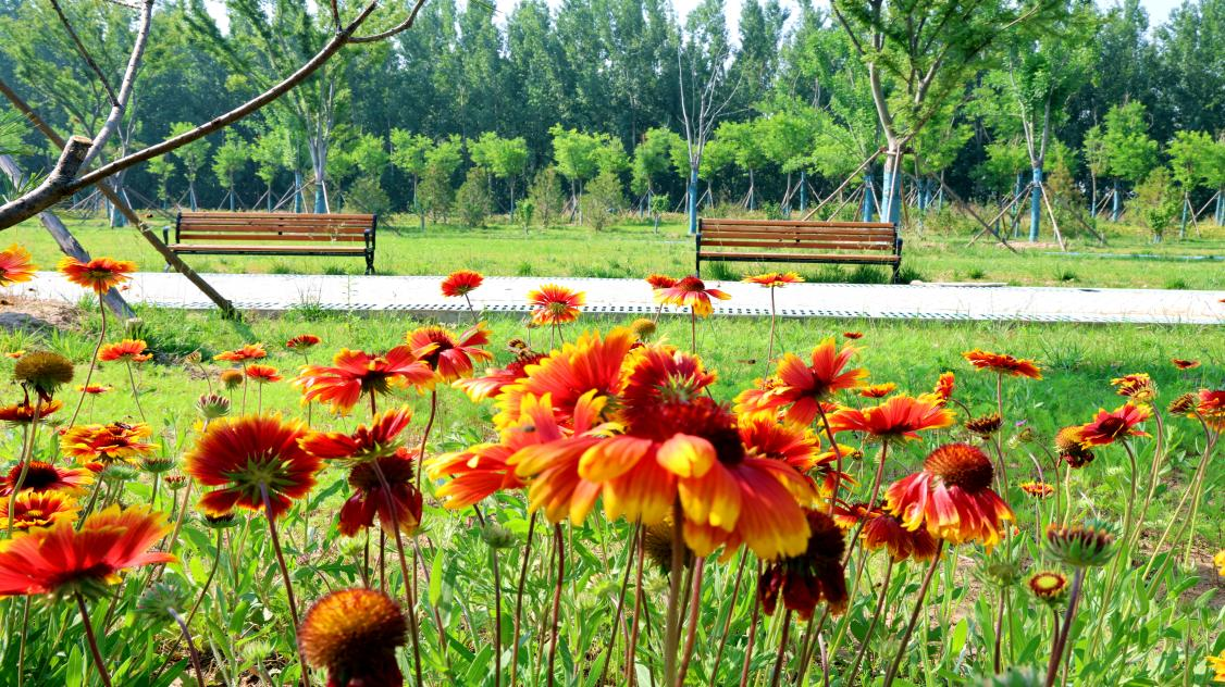 作为淄博市唯一沿黄县域,高青县黄河淤背区曾因泥沙淤积、土壤瘠薄,形成大面积沙化盐碱地,林木长势孱弱、土地闲置撂荒,生态功能薄弱。为破解这一难题,在市自然资源和规划局统筹指导下,高青县启动黄河淤背区百里生态廊道建设生态修复项目,总投资0.87亿元,以植树增绿、土壤改良、生态提质为核心,全面推进国土空间系统性修复。项目实施以来,通过加厚壤土层、增施有机肥,改良盐碱沙化土地,选用国槐、白蜡、紫叶李、海棠等乡土树种,完成苗木栽植1100亩,将240亩沉沙涝洼荒地改造升级为绿心公园,构建起乔灌结合、四季有景的生态景观体系。