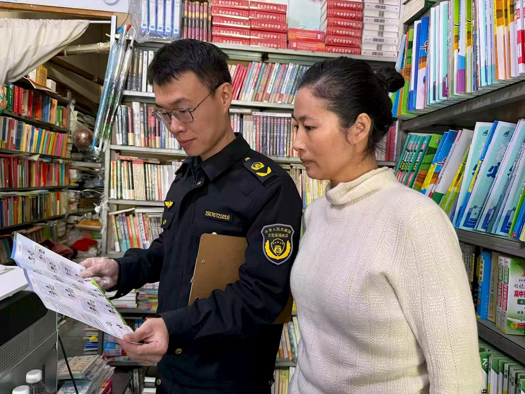 普法“零距离”。执法不仅是监管,更是引导。在检查中,执法人员坚持“执法+普法”同步进行,现场向经营业主发放“扫黄打非”宣传资料,并结合实际案例,详细解读相关法律法规。耐心指导经营业主快速识别非法出版物,督促其增强守法经营和社会责任意识,严把进货关口,从正规渠道采购出版物,自觉抵制各类非法出版物流入市场,共同守护好未成年人的精神家园。