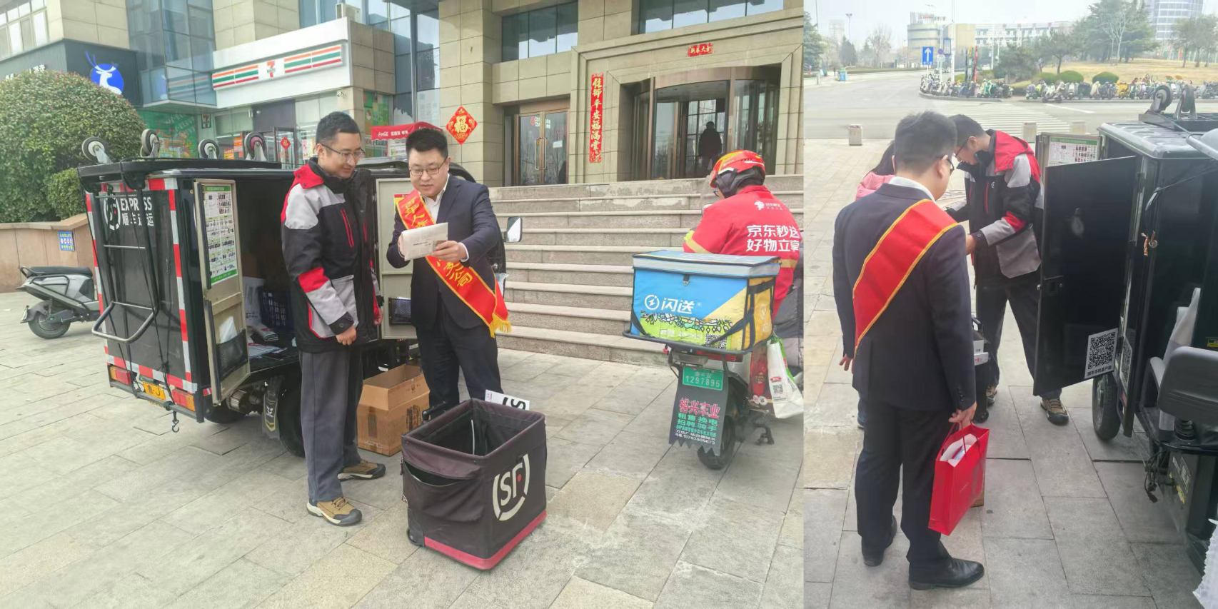 3月11日上午,百年人寿潍坊中支联合三家保险公司,前往潍坊银座广场及附近的南胡社区快递小哥服务驿站,向快递员及过往群众发放宣传折页,宣讲保障金融消费者八项基本权利、识别电信诈骗风险提示,受到群众积极响应和欢迎。