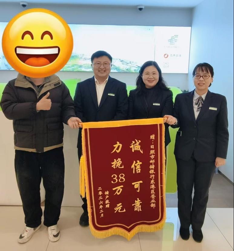 成功拦截38万元诈骗,邮储银行日照市分行东港区支行营业部守护客户资金获赠锦旗