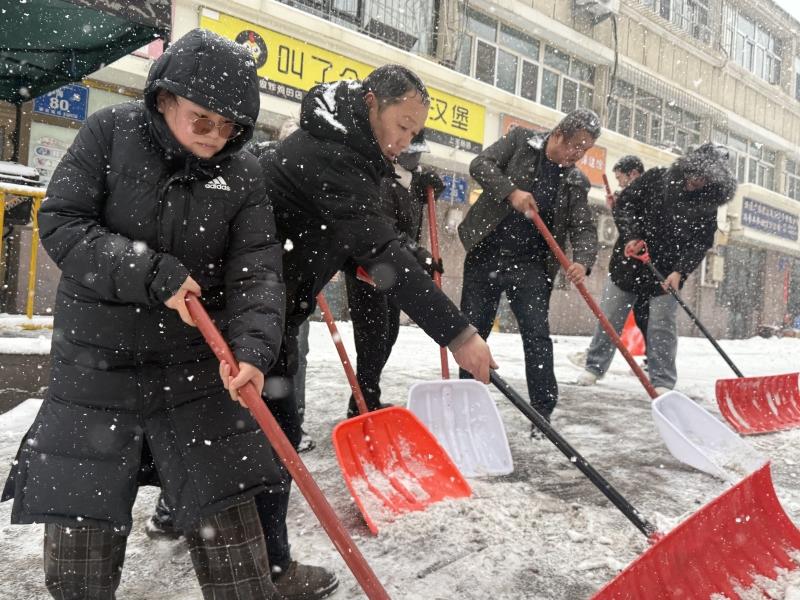 乌鲁木齐市沙依巴克区雅玛里克山街道铁西社区联合园林管理局驻社区工作队,组织工作人员与清雪作业人员奔赴辖区沿街人行路段,开展集中清雪行动。