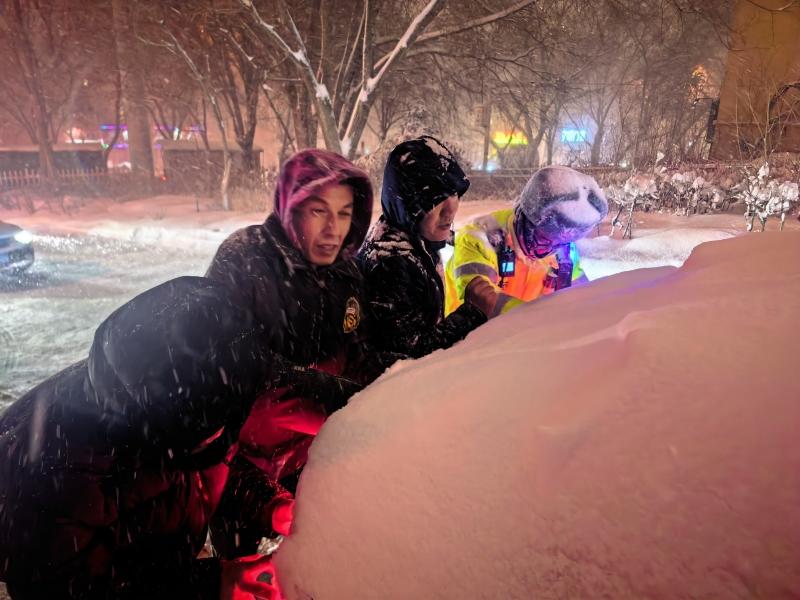 乌鲁木齐市沙依巴克区友好南路街道明园石油社区迅速组成应急帮扶志愿队,引导车辆有序通行。同时,工作人员上门为独居老人、困难群众送上生活物资与防寒提醒。