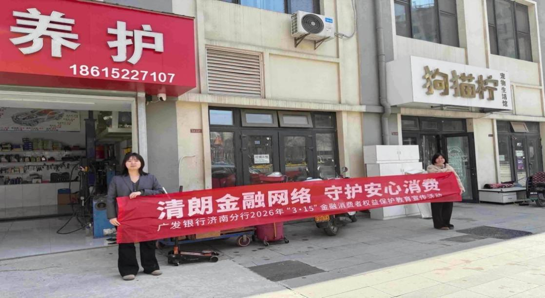 为深入贯彻落实国家金融监管总局关于2026年“3·15”金融消费者权益保护教育宣传活动要求,广发银行济南市中支行于3月9日走进周边商户,开展以“清朗金融网络 守护安心消费”为主题的金融知识普及活动,切实提升商户及周边群众的金融风险防范意识和自我保护能力。