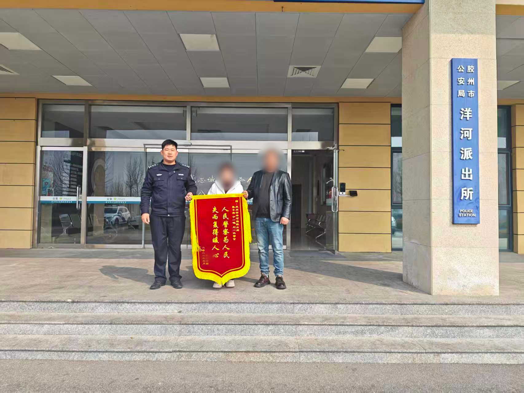 3月11日,董女士将一面印有“人民警察为人民,失而复得暖人心”字样的锦旗送至洋河派出所,以感谢民辅警帮助自己找回手机。3月7日,董女士报警称自己的手机丢失,且手机内存有重要资料。值班民警迅速以手机丢失点为中心开展走访摸排工作,经过实地走访与查看周边监控,最终成功找到捡走董女士手机的群众,随后民警迅速联系上该群众,最终将手机完好追回送还至董女士手中。