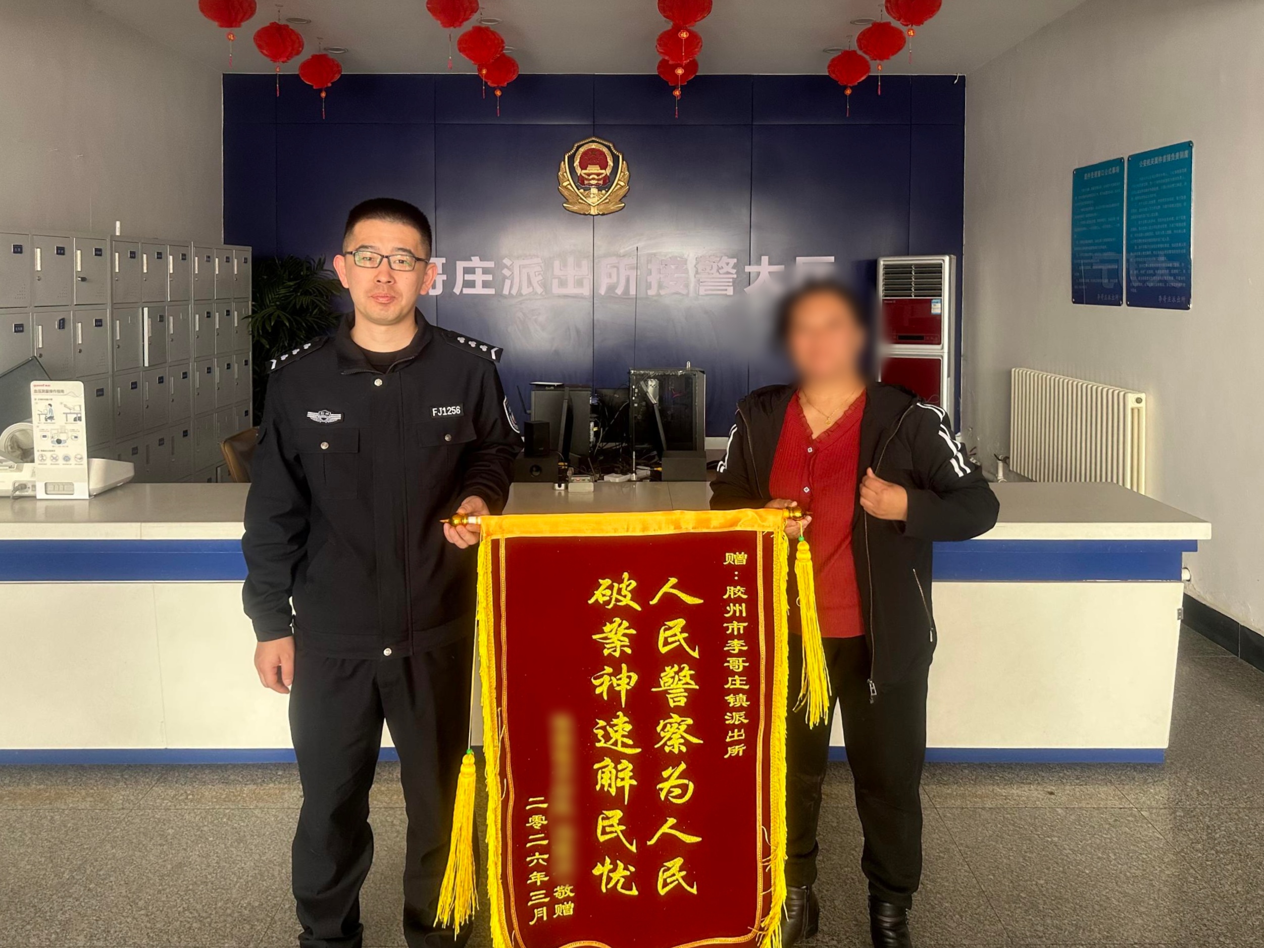 3月11日,李哥庄派出所收到一面印有“人民警察为人民,破案神速解民忧”字样的锦旗,马先生希望以此对民辅警快速帮其找回丢失的大鹅表示感谢。3月8日,李哥庄派出所接到马先生报警,称其家中因夜间忘记锁门,导致家中大鹅丢失。接到报警后,民辅警迅速开展工作,第一时间赶往现场,仔细询问马先生饲养情况、丢失时段及周边环境,同步联动摸排周边视频,并分组对辖区周边街巷、农田等进行地毯式搜寻,通过民辅警的密切配合,最终成功帮助马先生找回4只大鹅,减少了马先生的损失。
