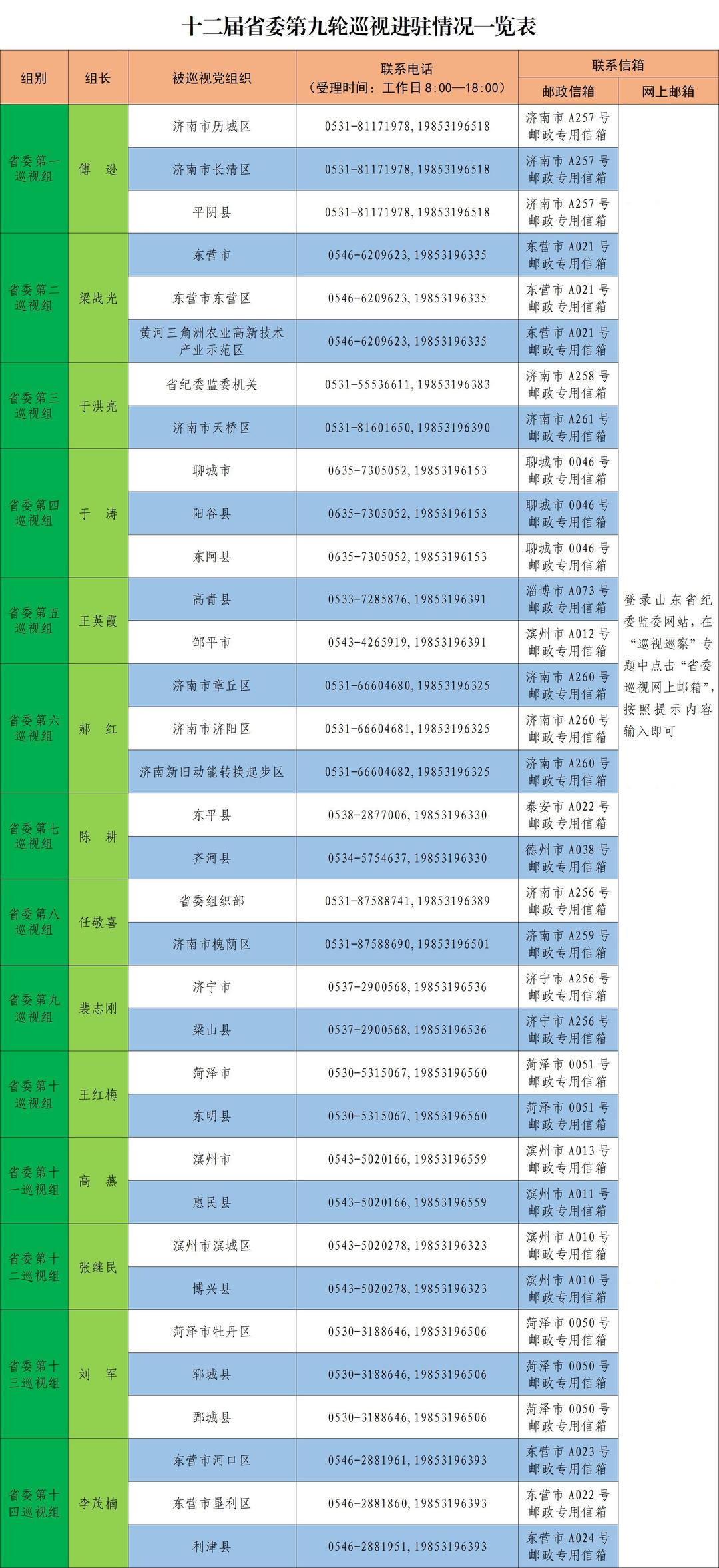 涉及泰安!已进驻5个设区市和25个县市区,山东14个省委巡视组联系方式公布