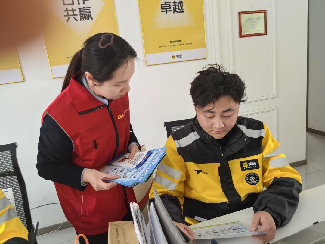 清朗金融网络 护航“两司两员”——东平农商银行“3·15”主题宣传走进美团驿站