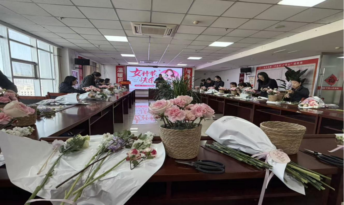 活动伊始,公司职场内欢声笑语,花香四溢。各式鲜花整齐摆放,康乃馨的温馨、玫瑰的热烈、洋桔梗的优雅,在热情洋溢笑脸的映衬下格外动人。来自全市女职工们欢聚一堂,暂时放下繁忙的工作,享受这份难得的静谧与美好。