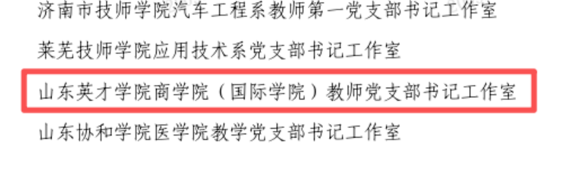 山东英才学院商学院教师党支部获评济南市“双带头人”工作室