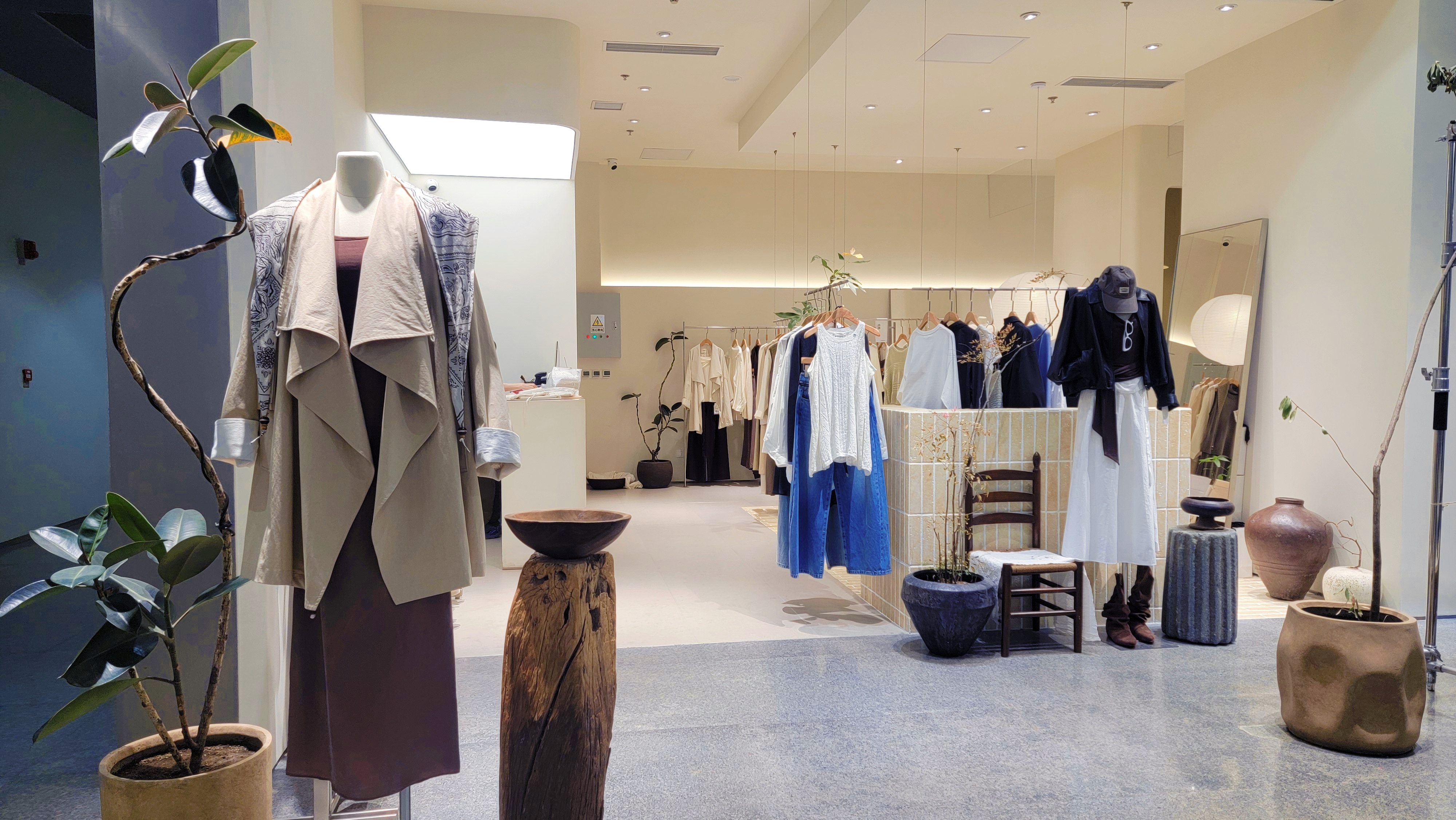 在西海岸世纪商城一家叫秋波的店铺里,柔和的灯光打在肌理感面料上。 店主秋波笑着对顾客说:“今年春天,西装要买大一号。 ”试衣间里,一位女士脱下严谨衬衫,换上一件简约白T恤,下身搭配流动的缎面半身裙。 镜中的她,西装的干练压住裙子的随性,而裙子的柔美又反哺了西装的硬朗。 她想象着穿着它,早晨踩尖头平底鞋快步进办公室,下班后直接赴约晚餐,得体与风情在此刻完美共生。
