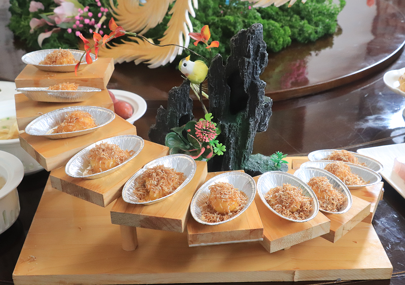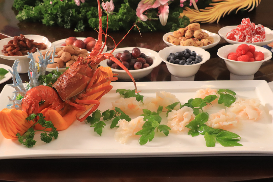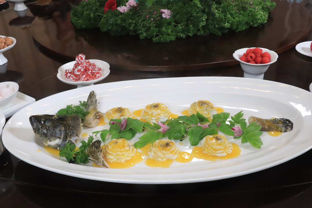 宴席以鲁菜咸鲜醇厚为本,精选优质食材,创新融入牡丹籽油、花蕊、花瓣等菏泽特产,定型36道特色菜品。其中招牌菜“花开盛世”斩获山东省“新时代新鲁菜”创新大赛双项大奖并入选《新鲁菜大典》,以明虾塑牡丹花瓣、配巨野金山摆盘,寓意“金山脚下、牡丹盛开”,将地域文化与家国情怀融于一菜。此外,曹州牡丹鸡、龙观牡丹、雪映桃花、牡丹桂鱼等名菜,或形肖牡丹、或香含芳华,一菜一画,让食客沉浸式品味牡丹文化。