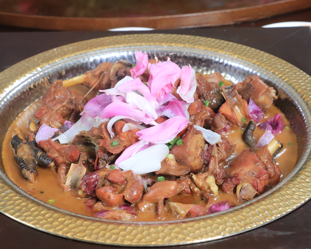据介绍,牡丹食用史可溯至东汉,团队传承唐宋明清烹饪技艺,挖掘牡丹食疗价值,让风味与养生兼具。历经三十余年攻关,牡丹花瓣、花蕊、丹皮、牡丹籽油、牡丹酱等本地特色悉数入馔,形成独树一帜的牡丹饮食品牌。如今,曹州牡丹宴已成牡丹文化旅游节热门体验,日均接待游客超2000人次,获俄罗斯、缅甸等国际友人赞誉,“赏花+品花”模式成为菏泽文旅融合亮点。