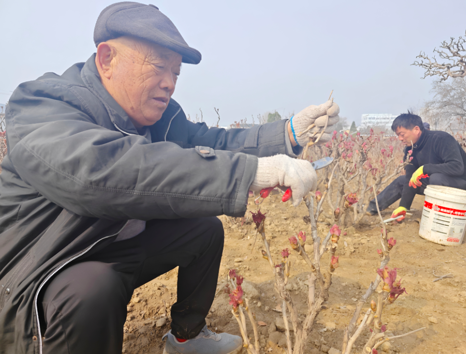 “我们从雨水节气开始修剪牡丹,一直持续到春分前后。”当天,孙文海带领十余名技术人员在大田内进行“整枝拿芽”,“修剪掉多余枝条,以保证养分更集中供应花蕾。”