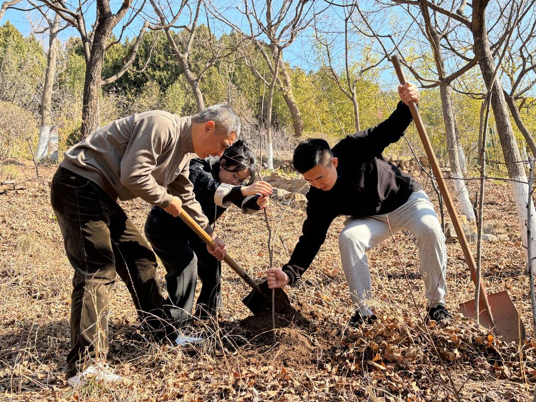 上午9时40分,各支部党员准时齐聚红叶谷北门,全体党员统一佩戴党徽,精神抖擞地投入到植树劳动中。活动现场,党员们分工明确、配合默契,扶苗、培土、压实、浇水……每一道工序都一丝不苟,现场一派热火朝天的劳动景象。经过近两个小时的默契协作,一棵棵新栽的树苗在春风中昂然挺立,为春日山野增添了勃勃生机。