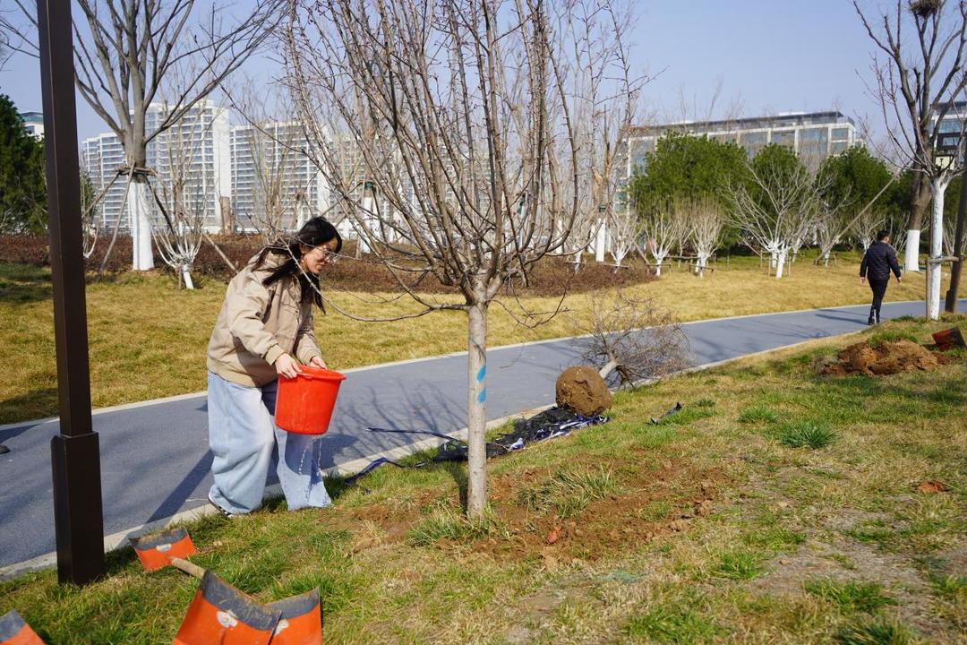 活动现场,人们热情高涨、分工协作,手持铁锹、水桶等工具,按照栽种规范挥锹铲土、扶苗校正、培土压实、浇水灌溉,每一个步骤都一丝不苟、有条不紊。春日暖阳下,一株株新苗扎根沃土、迎风挺立,为这座承载着商代文明的遗址公园增添了勃勃生机,也为千年古遗址披上了一层清新的绿装。