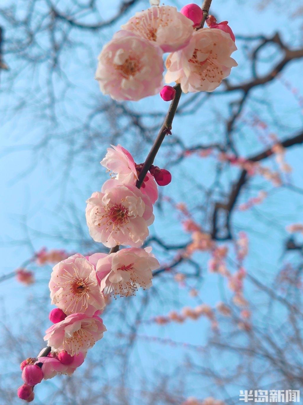 随着岛城天气的转暖,中山公园梅花园内的梅花已经逐渐迎来了盛花期,吸引了不少游人前来赏花拍照。3月11日,梅花园内聚集了大量的游客,不同品种、不同颜色的梅花争相绽放,成为春日中的一景。