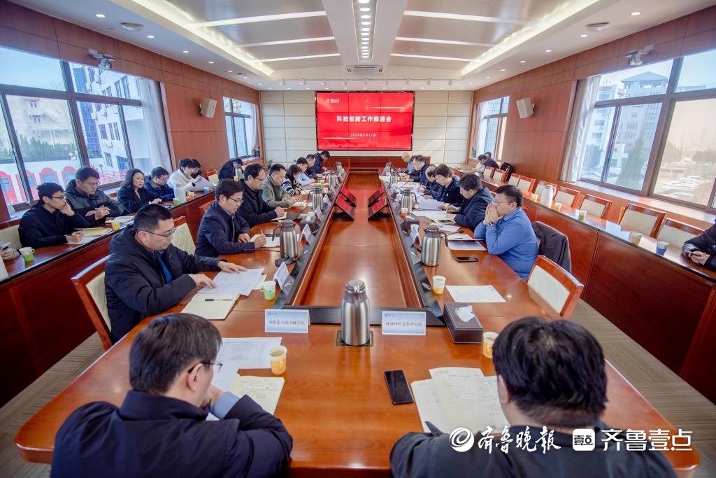 会上,各理工科学院和科技处分别汇报了2026年国家自然科学基金、山东省自然科学基金调度推进情况,总结前期工作成效,同时梳理短板不足。科技处处长于涛汇报了2026年学校科技重点工作安排。