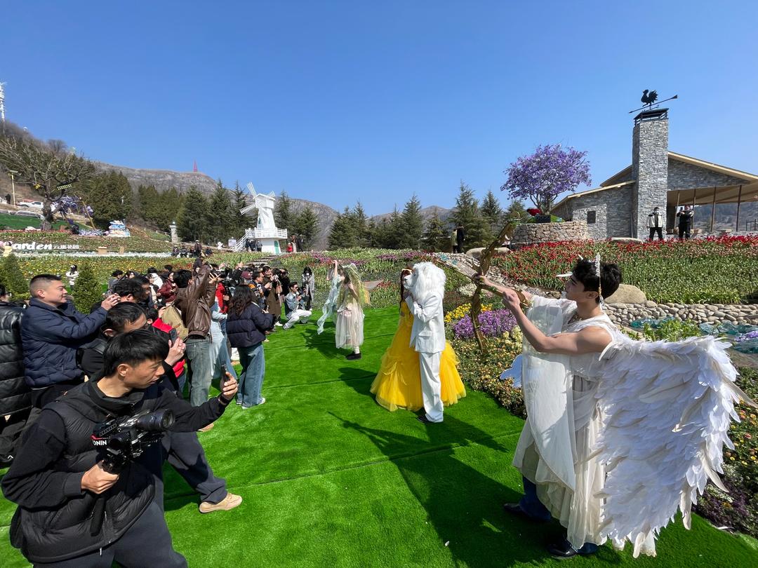 经过昼夜不停地数日筹备,“云崖花园”终于在融融春日惊艳亮相,吸引众多游客前来打卡拍照,吹响了2026年淄博春季文旅的先锋号。