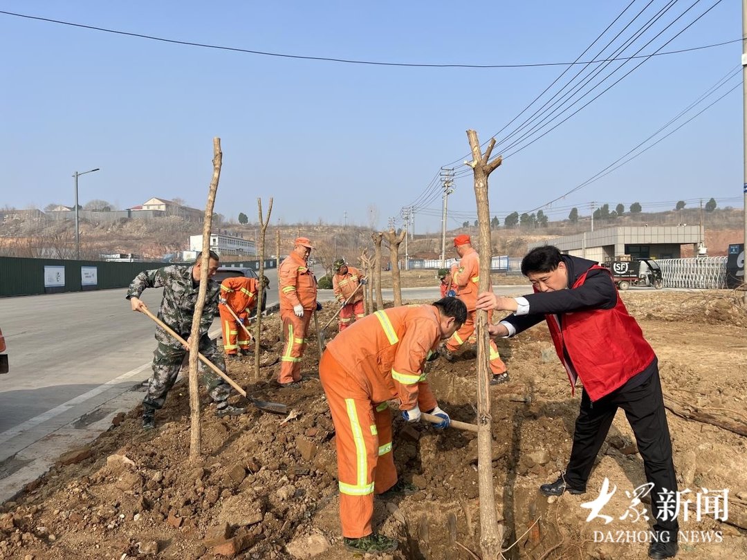春回大地万物苏,植树添绿正当时。3月12日,正值第48个中国植树节,淄博市博山区白塔镇退役军人志愿服务队积极响应“履行植树义务,共建美丽中国”的号召,组织30余名退役军人志愿者到白塔健康医药产业园区开展义务植树活动。