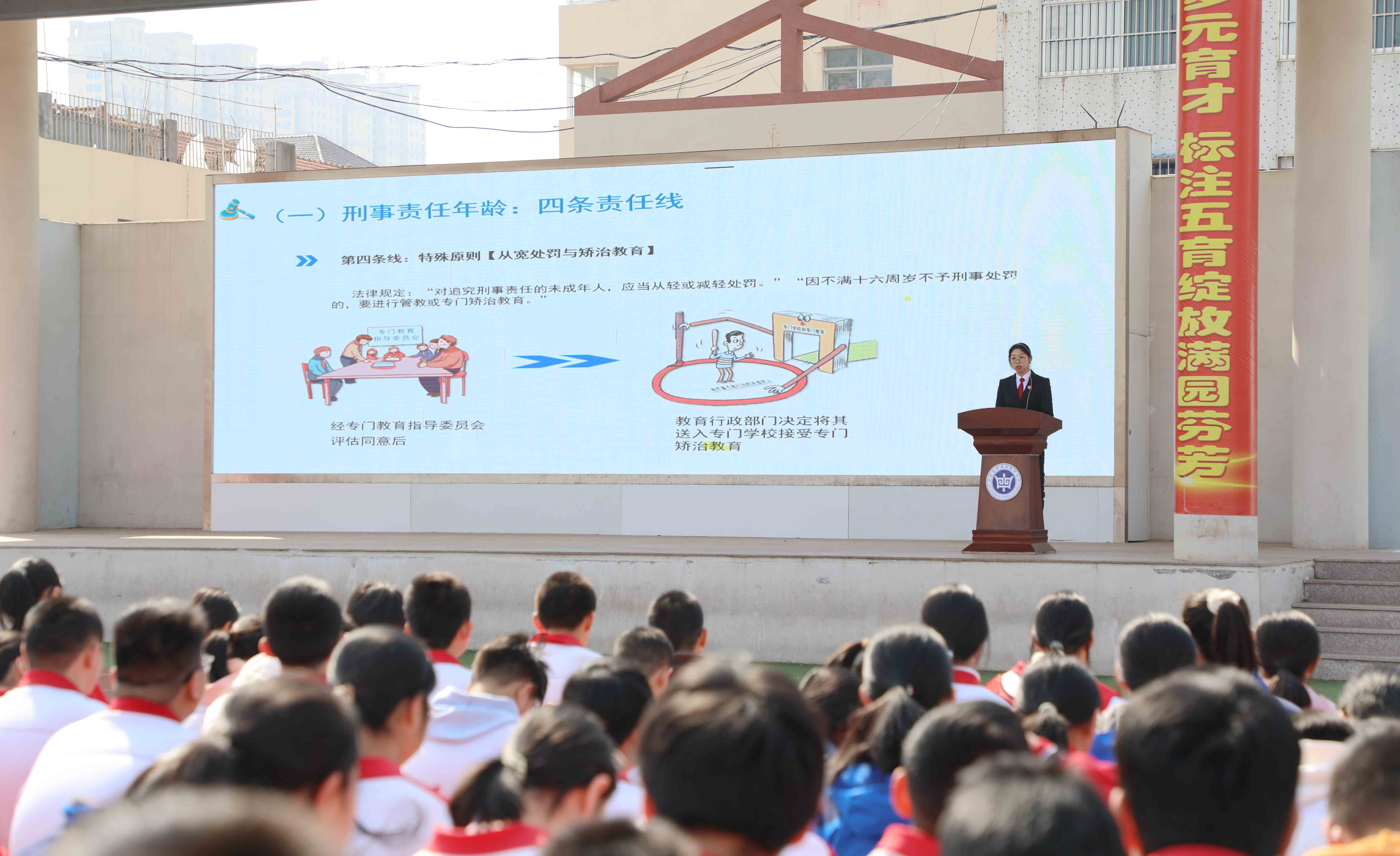 课堂上,干警聚焦防范校园欺凌、网络诈骗、安全隐患等主题,通过法条解析、以案释法、情景模拟、问答互动等形式,引导同学们敢于维权、善于维权,提高规则意识、筑牢安全边界,做尊法学法守法用法的好少年。