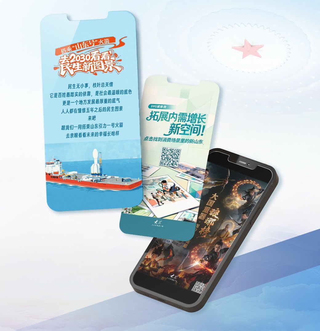 指尖交互体验,让两会报道“触”手可及。创新推出一批SVG技术融合互动类小游戏,推出《SVG读报告丨拓展内需增长新空间!点击找到消费场景里的新山东》《快上车!千年文物喊您当旅伴啦》等产品,实现权威内容、互动技术、原创手绘深度融合。交互体验产品《搭乘山东号火箭,到2030看看民生新图景》,则以“山东号火箭”为创意载体,把“国家的五年”转化为“你我的五年”,让用户成为2030年的“预体验者”,实现从“我看报告”到“报告为我而写”的情感抵达。