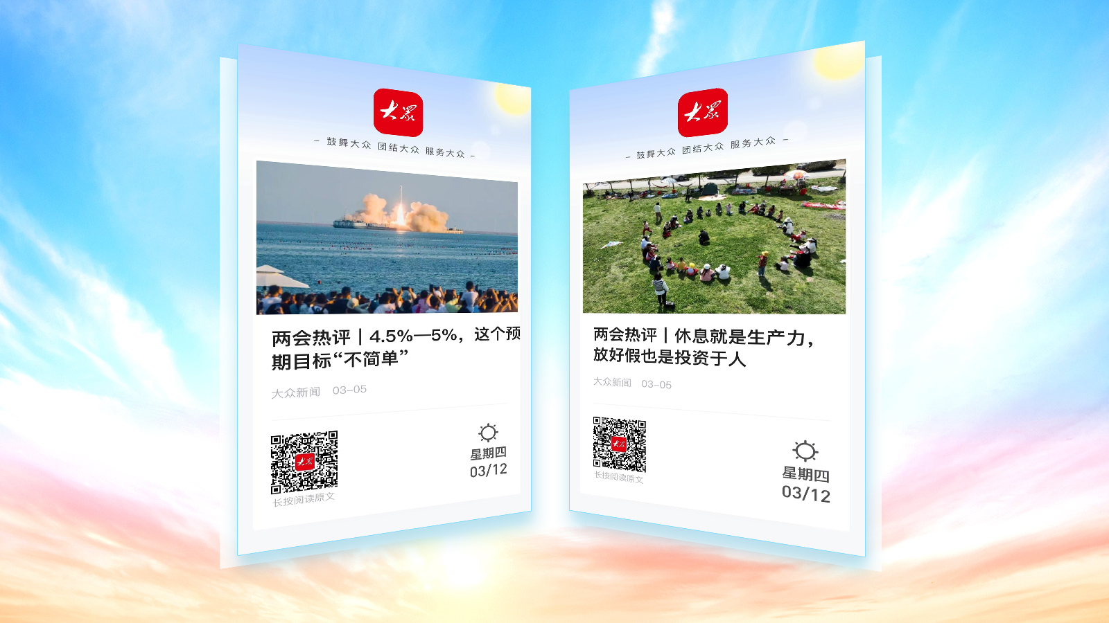 “两会热评”开麦发声,第一时间解读两会热点,汇聚发展共识。3月5日,政府工作报告新鲜出炉,大众日报·大众新闻第一时间推出《两会热评|4.5%—5%,这个预期目标“不简单”》,解读2026年中国经济预期目标,传递复杂形势下中国发展的清醒与坚定,带受众在“区间目标”的分寸里,读懂中国经济的平衡之道,当日,这篇网文在大众日报·大众新闻微信公众号阅读量迅速突破10万+。《两会热评|把好规划和执行力结合起来》《两会热评|大省挑大梁,“新”题何解?》等系列评论,采用“评论+记者VLOG+海报”的融合表达,既有观点的锐度,也有现场的鲜活,让主流声音掷地有声、入脑入心。