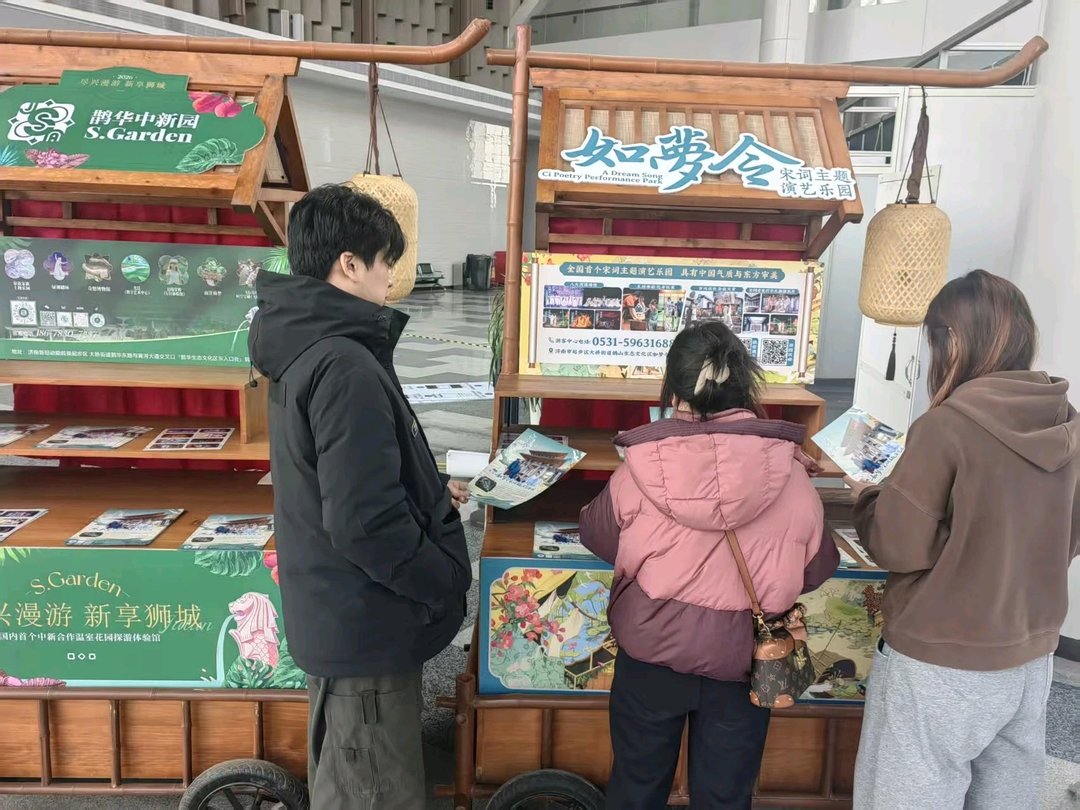 展会期间,鹊山生态文化区精准把握展会客流优势,在展馆内设立专属文旅服务咨询台,配备专业服务人员,为参展客商、观众提供“一站式”全方位服务。工作人员详细介绍鹊华中新园、如梦令宋词主题演艺乐园、泉韵Live街区三大核心文旅载体的特色亮点,精准提供游玩攻略、路线规划、票务购买、演艺场次查询等贴心服务,耐心解答各类咨询问题,让参展客商在展会之余规划休闲行程,沉浸式感受鹊山生态文化区的独特魅力,切实推动“会展客群”向“文旅消费客群”转化。