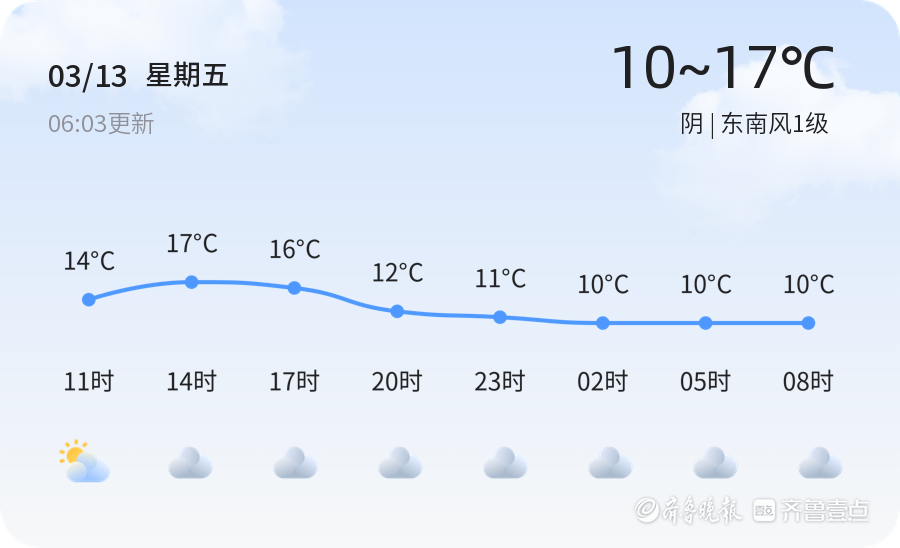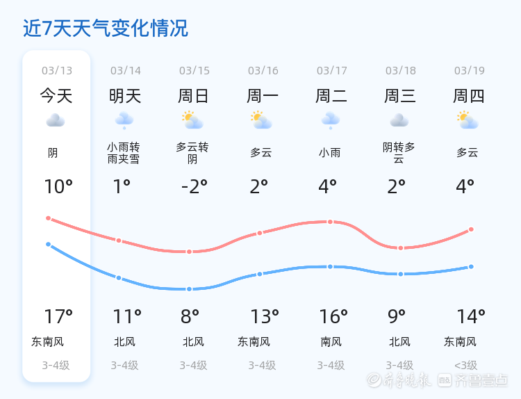 今日是2026年3月13日,星期五,农历正月廿五。潍坊市今日天气阴,气温介于10℃至17℃之间,东南风1级,空气湿度为64%,PM2.5指数为59。各区天气情况基本一致,均为阴天,风力较小,适合户外活动。然而,市民需注意气温变化,适时增减衣物。明天的天气将与今日形成鲜明对比。预计明日潍坊市将有小雨转雨夹雪,气温大幅下降,低温降至1℃,高温仅11℃,北风风力3-4级。市民出行需携带雨具,注意防寒保暖,同时关注路况信息,确保行车安全。未来三天,潍坊市天气趋势复杂多变。周日(3月15日)天气多云转阴,气温进一步下降,低温降至-2℃,高温8℃;下周一(3月16日)多云,气温略有回升,低温2℃,高温13℃;下周二(3月17日)小雨,气温4℃至16℃。建议市民关注天气预报,提前做好防范措施,尤其是雨雪天气可能对交通造成影响,需谨慎驾驶。温馨提示