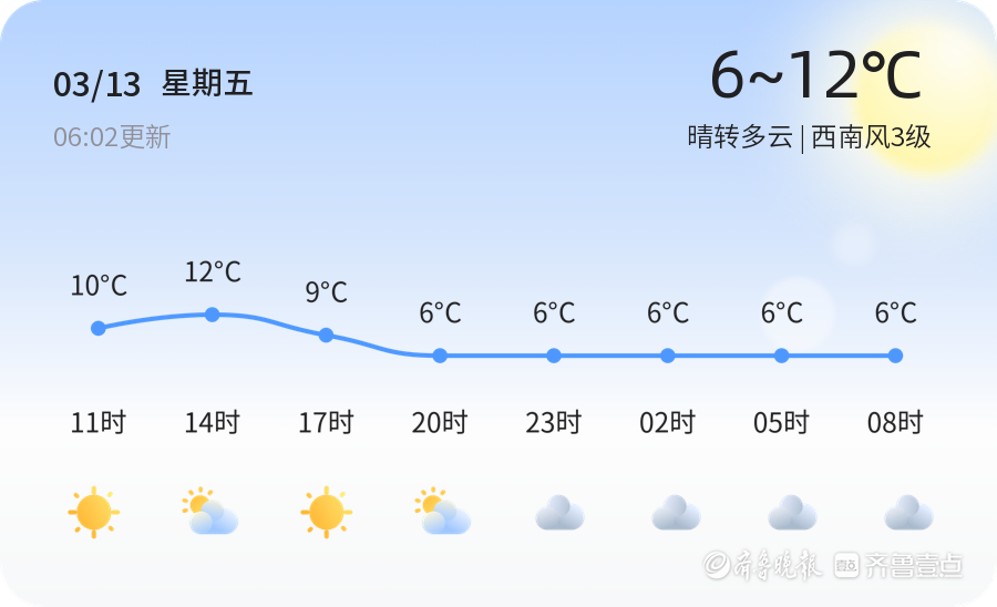 今日烟台迎来晴转多云的好天气,气温介于6℃至12℃之间,西南风3级,空气湿度49%,PM2.5指数为90,空气质量状况为良。市民朋友们可以放心外出,但需注意早晚温差较大,建议适当增添衣物,出行时随身携带雨具以备不时之需。目前,烟台的空气质量良好,适合户外活动,但敏感人群仍需注意防护。