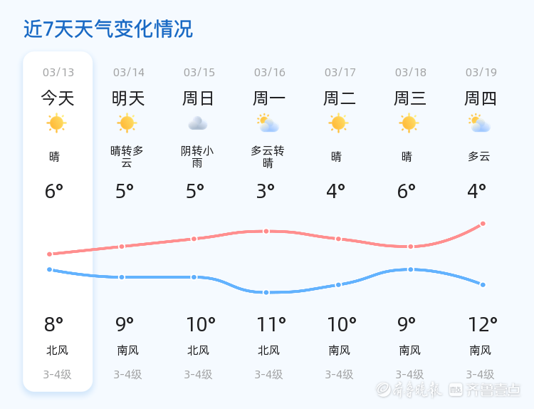 今天是3月13日,星期五,农历正月廿五。青岛市今日天气晴朗,气温较为适宜,白天气温最高可达8℃,最低气温为6℃,目前实时气温为2.3℃。全市各区普遍晴朗,西北风2级,空气湿度为74%,PM2.5指数为96,空气质量良好。市民们可以在晴朗的天气中享受户外活动,同时注意防晒和保暖。